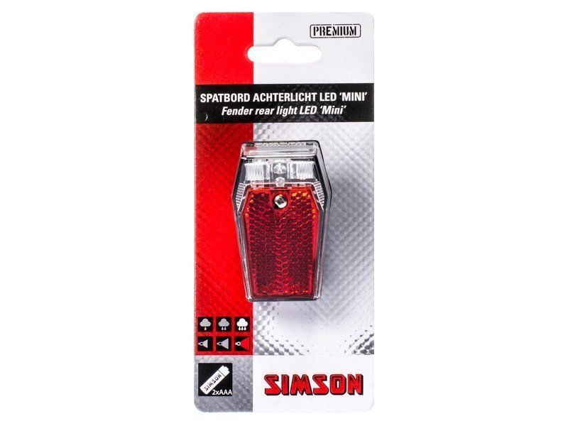Het Simson Batterij Spatbord achterlicht LED is voorzien van roestvrijstaal bevestigingsmateriaal en heeft roestvrijstalen metaaldelen aan de binnenzijde. De niet roestvrijstaal metaaldelen zijn extra vernikkeld. De drukknop bevindt zich aan de achterzijde van het lamphuis. Hierdoor is het lampje absoluut 100% spat- en regenwaterdicht en kan roestvorming niet meer plaatsvinden. Het lampje kan eenvoudig op het spatbord worden gemonteerd met behulp van een ringsteeksleutel. Inclusief 2 x AAA batterijen.